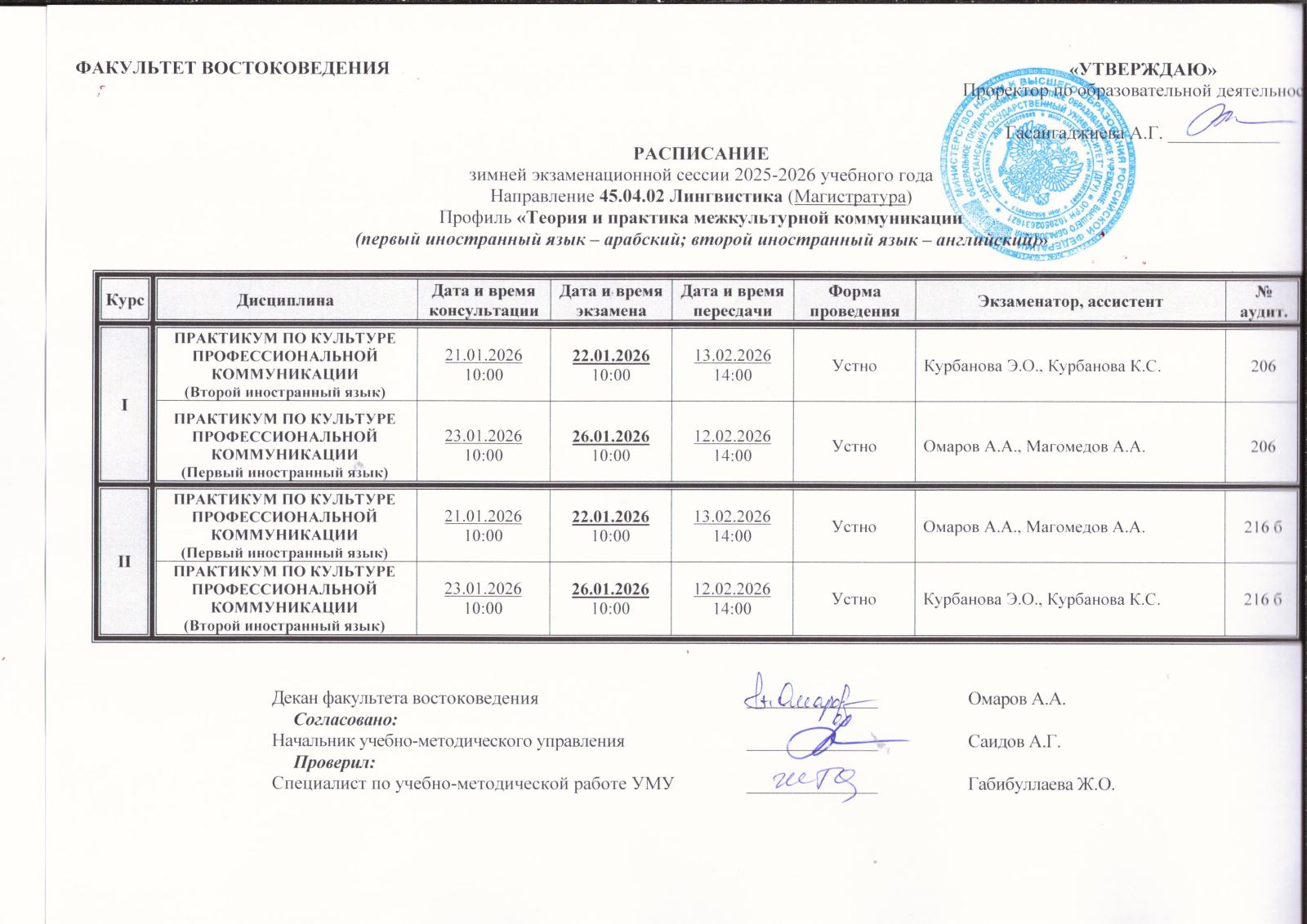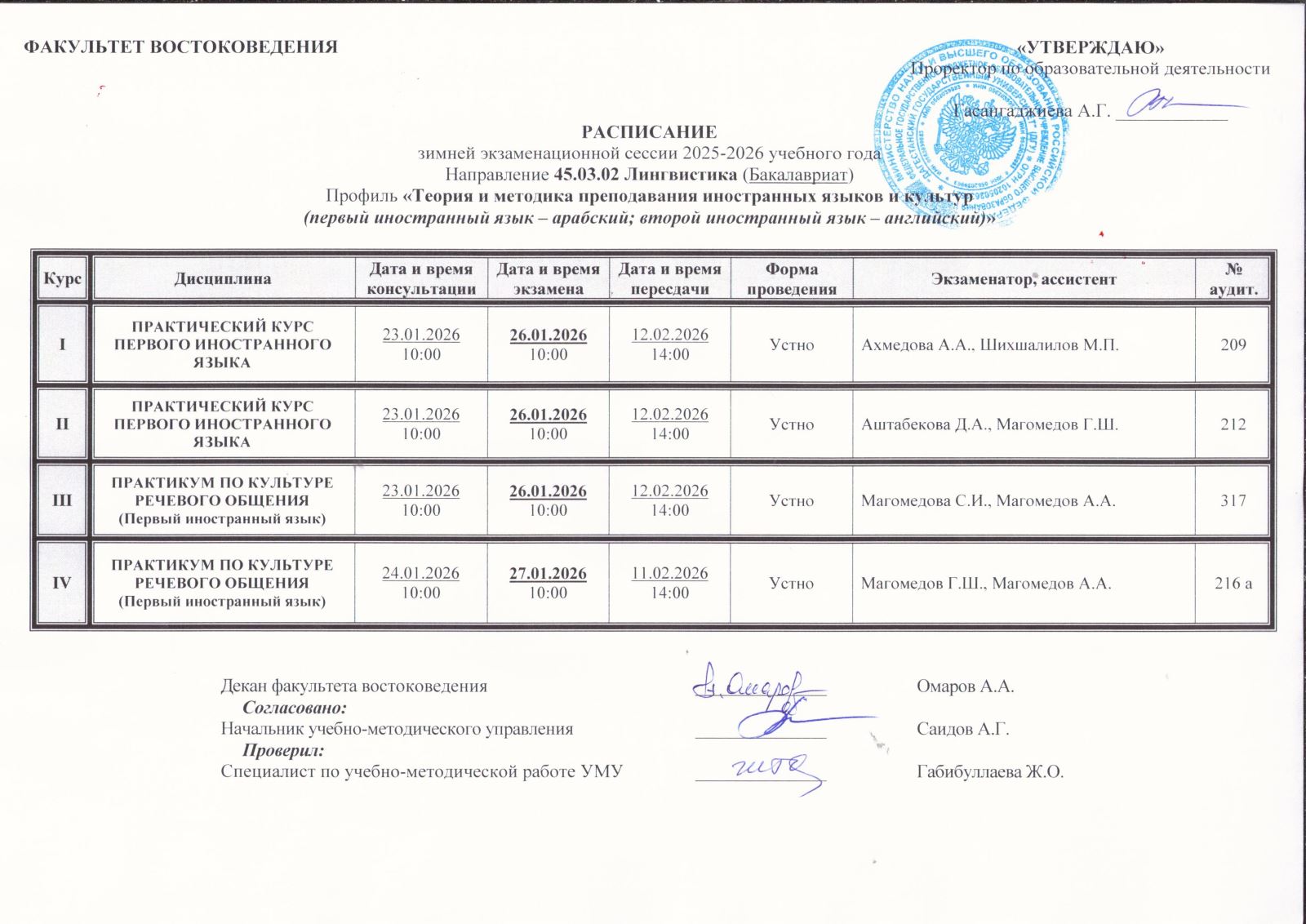 Расписание экзаменов зимней сессии 2025-2026 уч. год